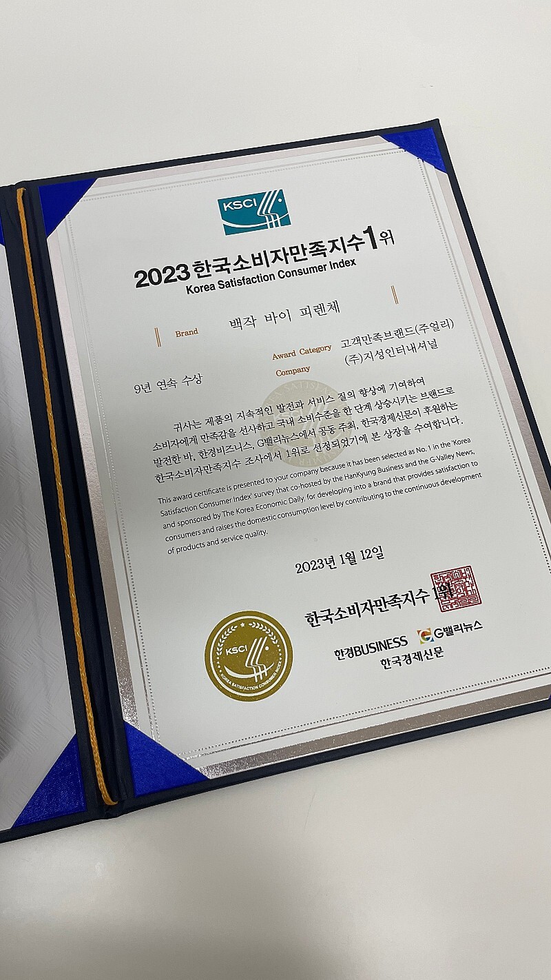 한국소비자만족도지수 1위를 9년속 받았다고 합니다.